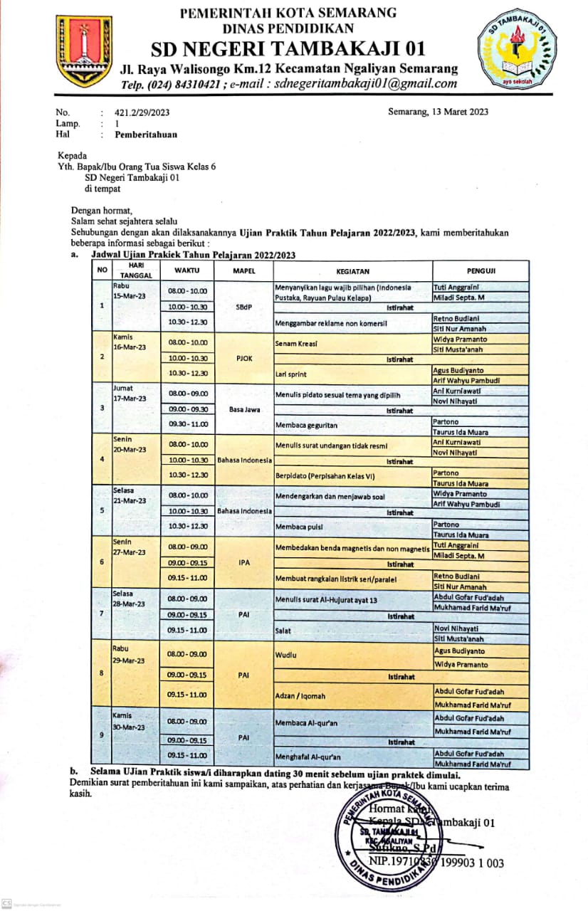 penilaian akan dilakukan oleh seluruh bapak ibu guru SDN Tambakaji 01 secara bergantian. Di harapkan seluruh siswa mempersiapakan ujian sebaik mungkin.